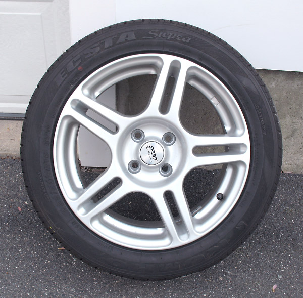 205/50-r16 Kumho Ecsta 712 ultra-high performance tires. V Speed rated (150MPH). Includes complete set of lug nuts, spare nuts, and McGard locking lug nuts (lug nut set is a $40 value in itself!)